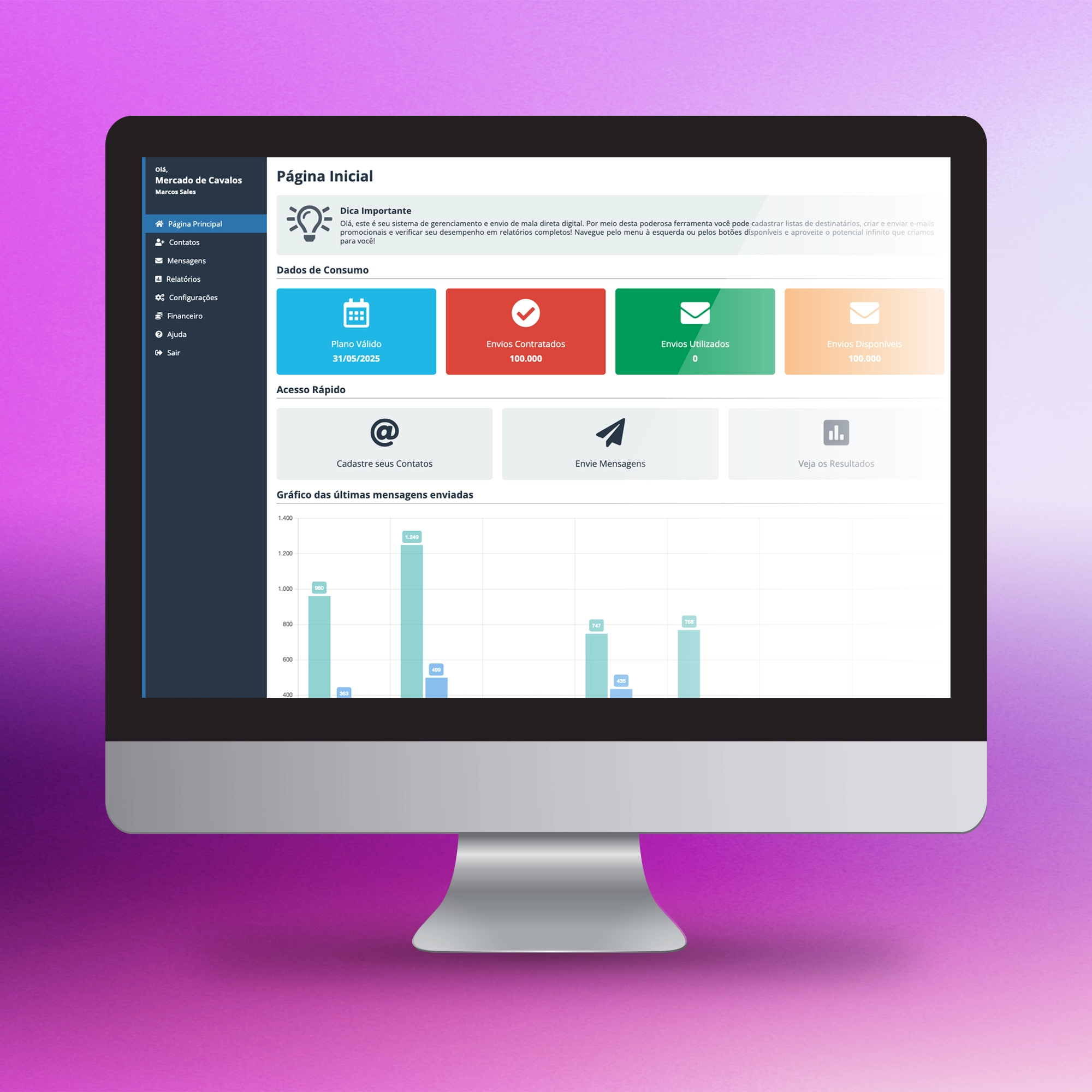 Pensada desde o início para escalar, a plataforma oferece alta entregabilidade, reputação controlada e infraestrutura preparada para grandes volumes, com suporte técnico e melhorias contínuas baseadas no uso real dos clientes.