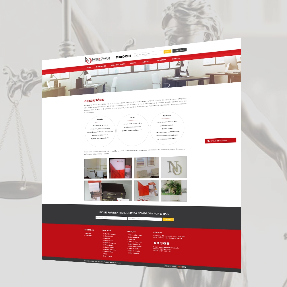 O escritório Nieto & Oliveira, fundado em 1997, consolidou-se como uma referência na área jurídica, especialmente no segmento empresarial, oferecendo soluções jurídicas estratégicas e personalizadas em diversas áreas do Direito. O desafio era criar um site institucional que refletisse a seriedade, a tradição e a versatilidade do escritório, além de facilitar o acesso a informações para clientes, parceiros e interessados nos temas jurídicos abordados.